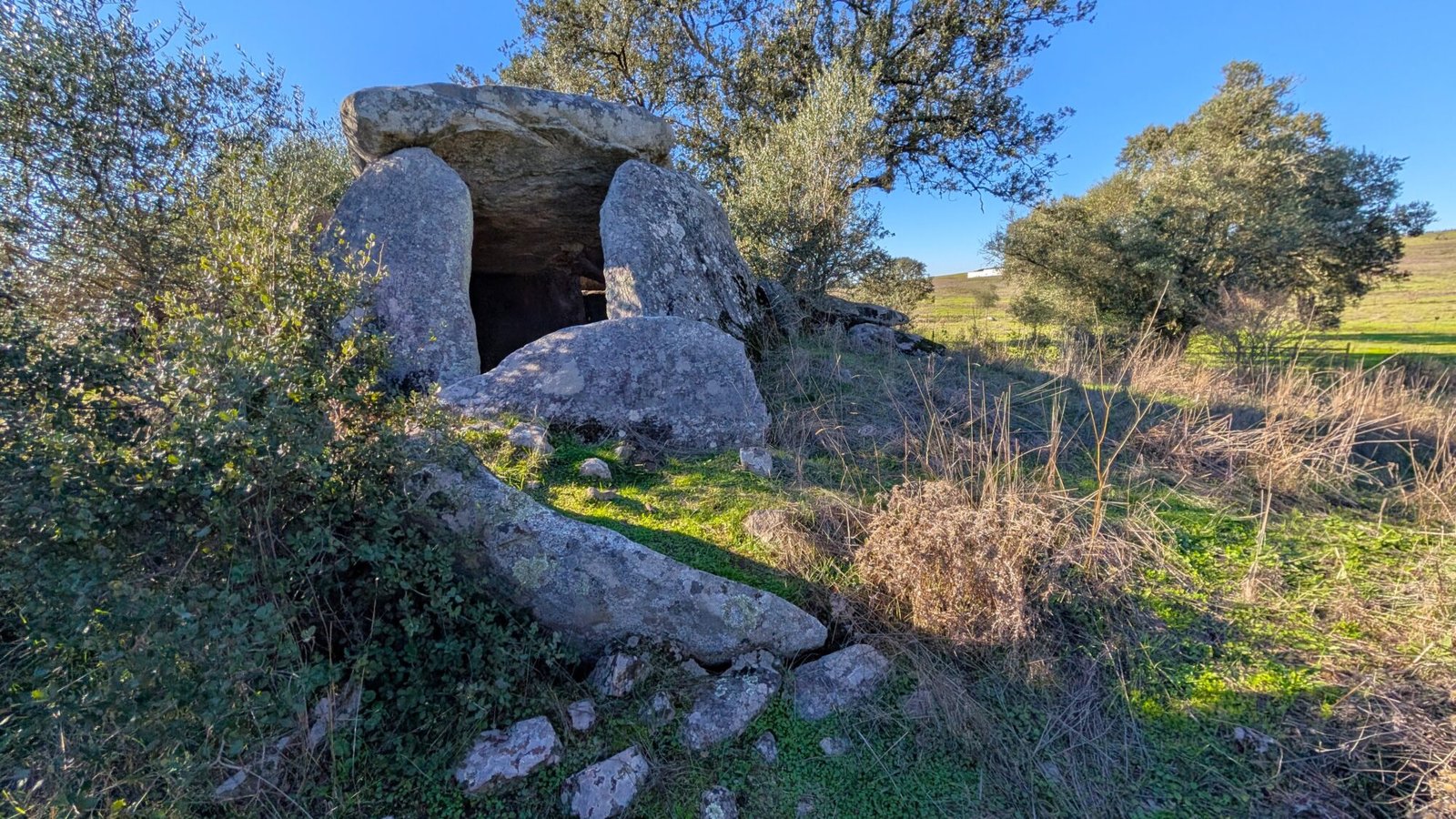 This “anta” (or dolmen) is an incredible prehistoric site, located on a hilltop on the right bank of the Lavre stream. Still partially covered by its tumulus (or mound), it has a chamber of 8 massive stone slabs, 6m high. The capstone is still in situ, although it has been broken by a lightning strike sometime in the past. The corridor is mostly intact, just under 2m high and (originally) 11m long, in the direction of the East.