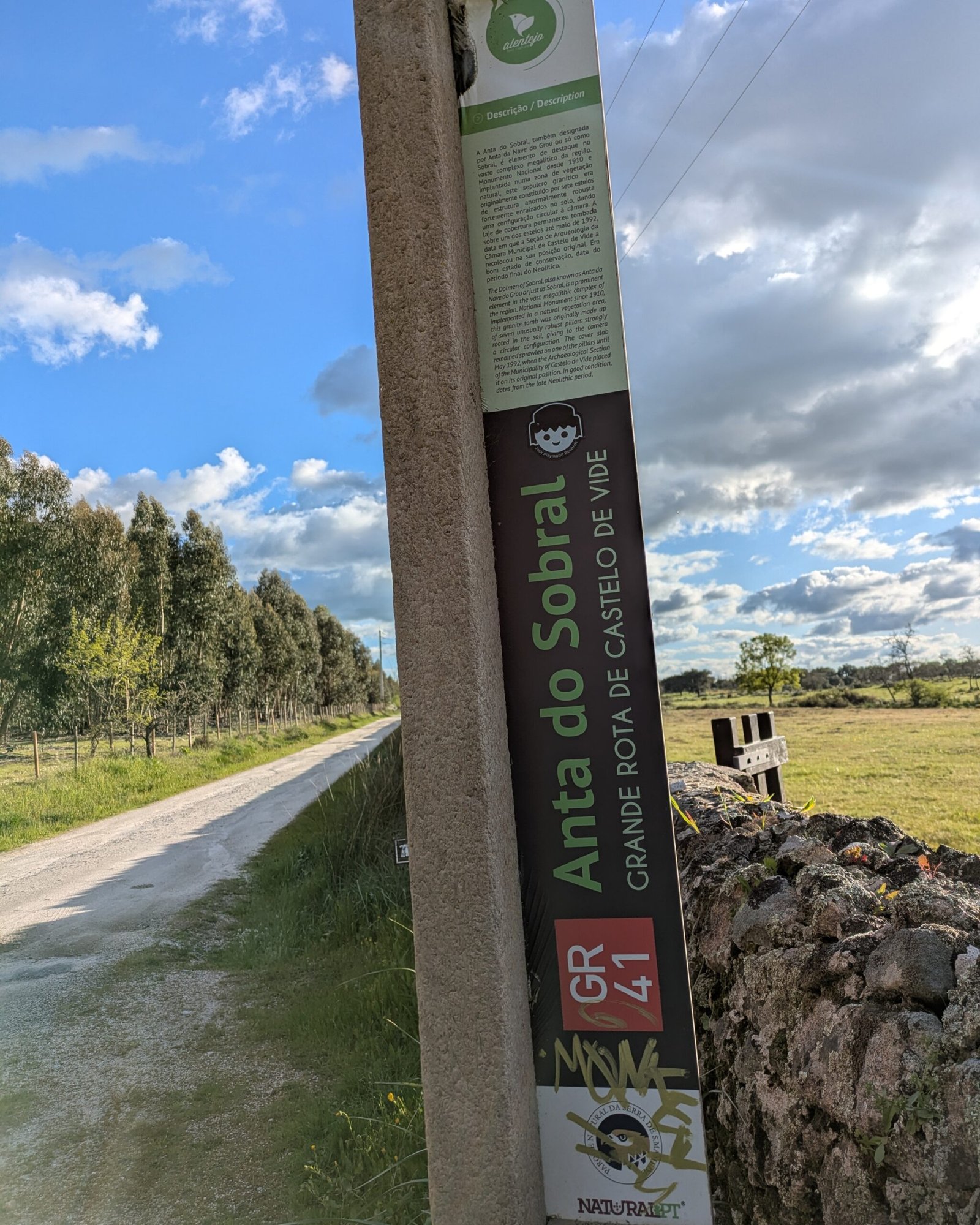 The anta is located on a private field in a farm, the Herdade do Sobral. It’s accessible through a closed gate: just make sure that you close the gate behind you. The anta is in a field that is actively used as a cow pasture. (Mind the cows and mind your step!) It is included on the GR41 long-distance trail, the “Grand Rota de Castelo de Vide.”