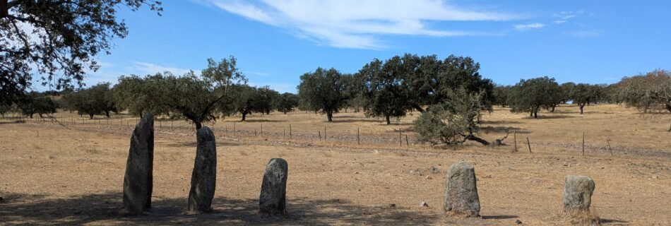 Also known as: Cruciforme Megalítico do Alto da Cruz, Cromeleque Cruciforme do Alto da Cruz English translation: “Menhirs of Peak of the Cross”, or “Megalithic Cross-Shape…” or “Cross-Shaped Cromlech…” The wind blows gently through the trees and grass on the top of the Alentejan hill. On a cement block stands a tall geodesic marker. The …