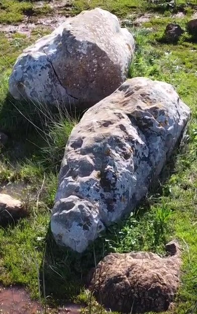 This group of menires is very close to Amantes 1, about 100m to the East. It was likely another cromeleque, again elliptical but oriented northeast to southwest. The minor axis would have been about 40m long. There were ten menires found, ranging from a half meter to 3 meters in length.