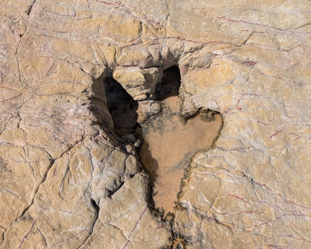 Stand on the rock ledge as the waves crash beneath you. The strange holes in the rock ledge weren’t created by an accident of geology. They are the footprints that a dinosaur made, a hundred million years ago. Careful: don’t let the yawning chasm of time make you dizzy, or you’ll fall into the sea below!