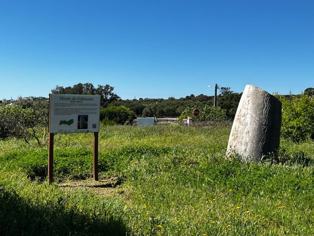 The menir is in the Algarve, district of Faro. It’s in the municipality of Lagos, near the western entrance to the town of Odiáxere. It’s located on private land, in the Quinta do Menir.