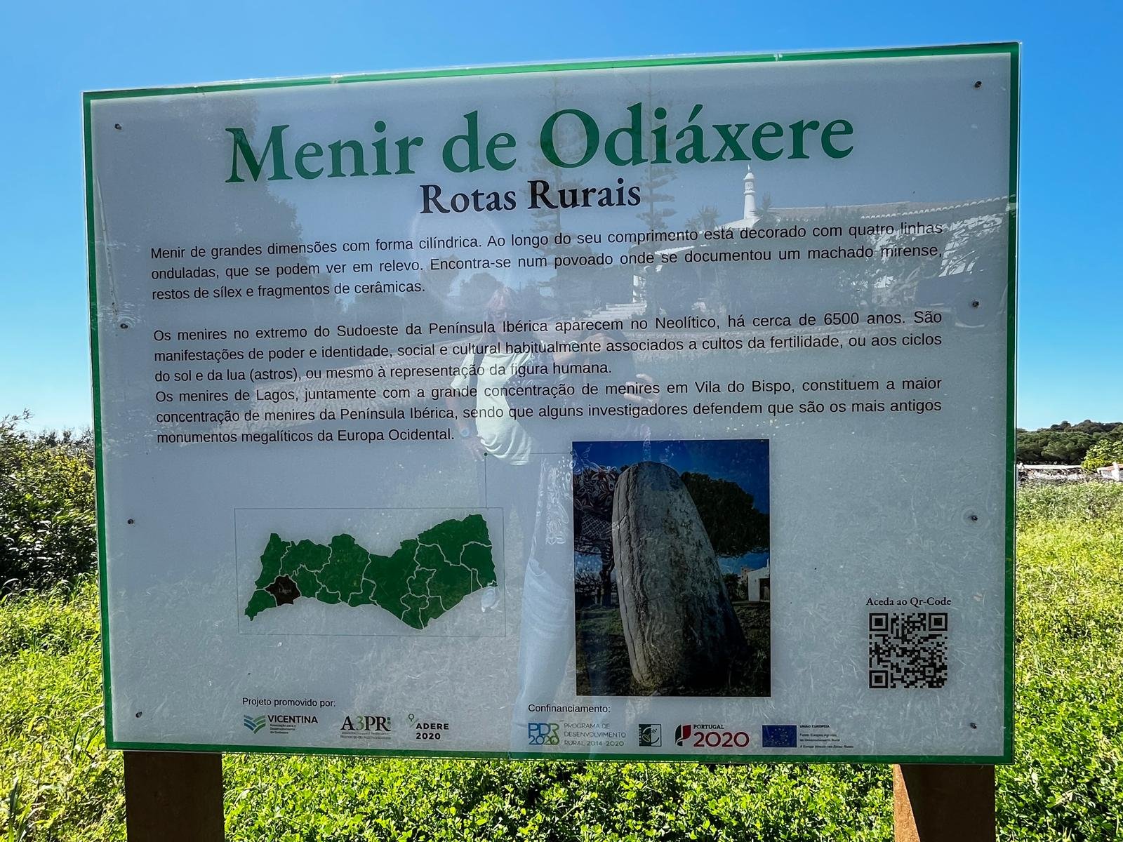 The menir is in the Algarve, district of Faro. It’s in the municipality of Lagos, near the western entrance to the town of Odiáxere. It’s located on private land, in the Quinta do Menir.