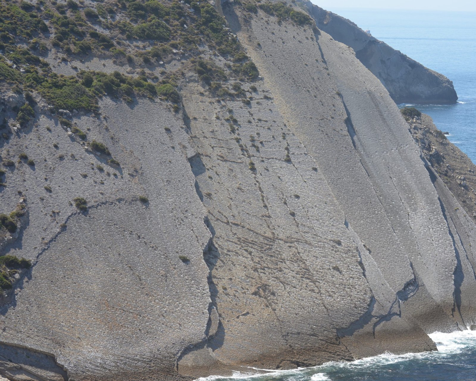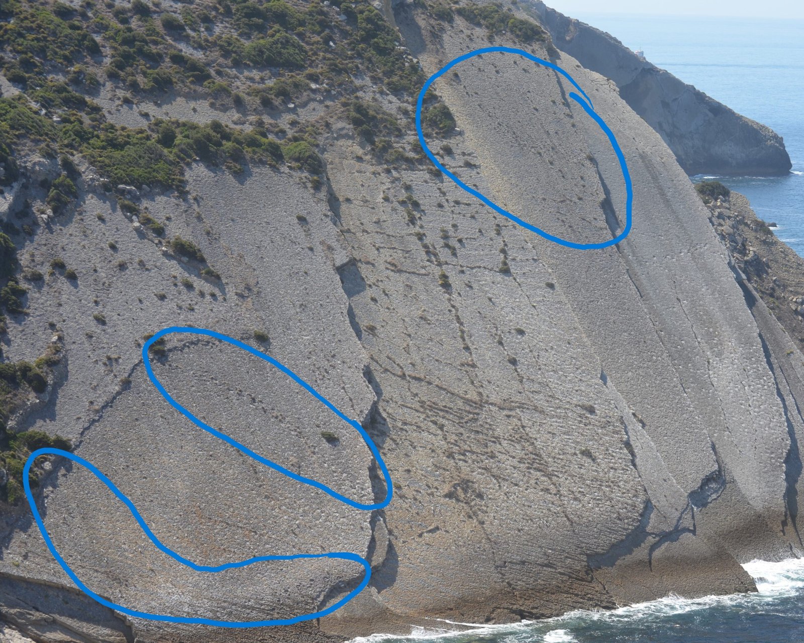 After you follow the trail for about 1.3 km, you will see a wooden railing along the cliff edge. From there you can look out to the Pedra da Mua Natural Monument across the bay. There is a noticeboard with information in both Portuguese and English explaining the fossils.